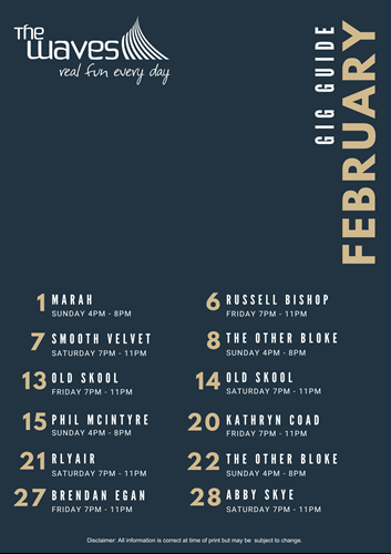 From acoustic to rock & roll, country and current, The Waves books a fantastic selection of local and metropolitan acts for live entertainment Friday, Saturday and Sunday every week.